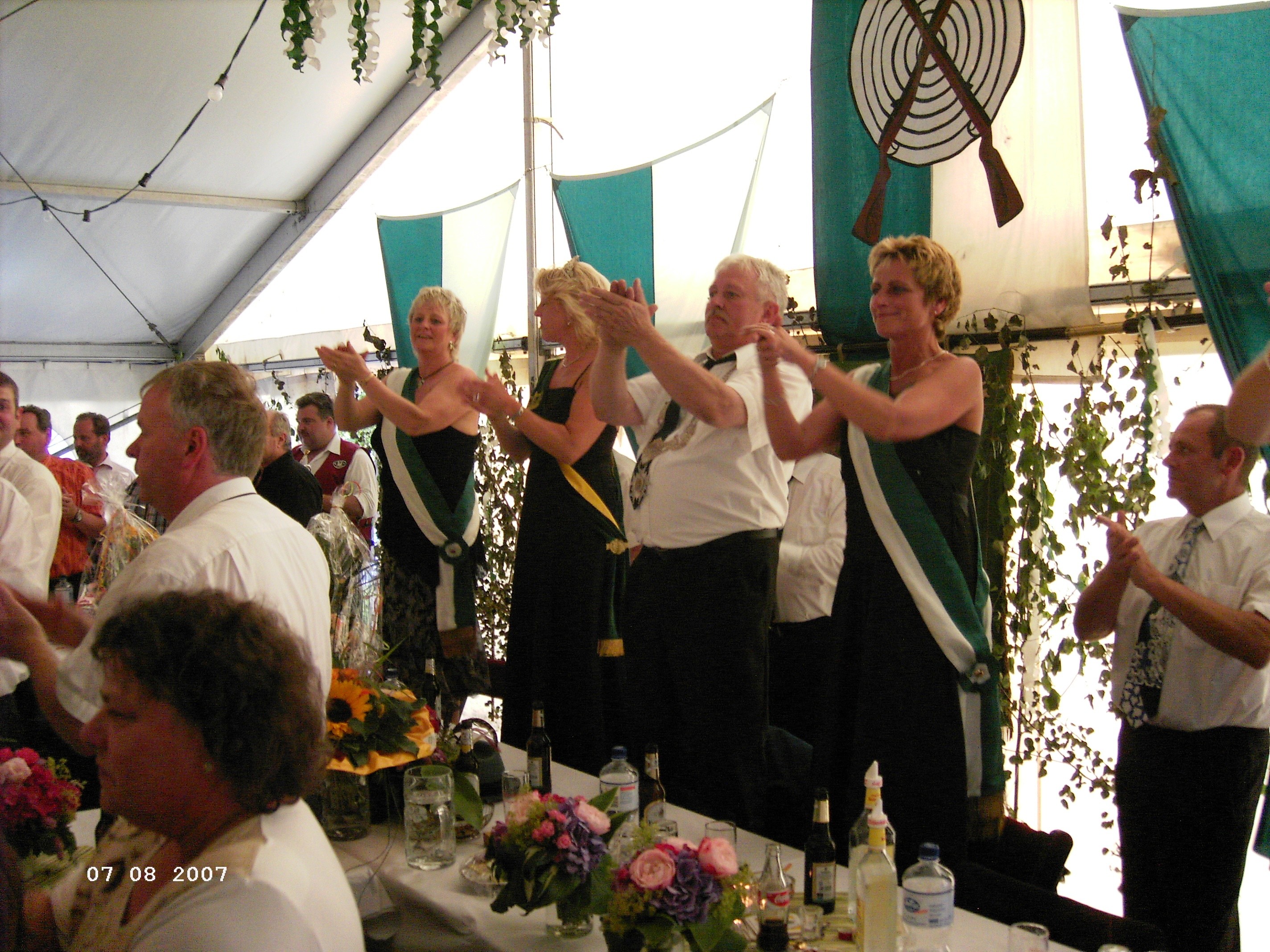 Am Sonntag traten die Schützen um 13.30 Uhr am Haus des Gastes zum Ausholen des neuen Königs nebst Hofstaat an. Die Strecke bis zum Hause Karrenbrock wurde mit dem Bus zurückgelegt. Nach einen kurzen Aufenthalt ging es wiederum mit dem Bus zurück zur katholischen Kirche. Der König nebst Hofstatt wurde natürlich standesgemäß mit einer Kutsche gefahren. Von der katholischen Kirche wurde durch das geschmückte Dorf zum Ehrenmal an der evangelischen Kirche marschiert. Zur Ehren der in den Weltkriegen gefallenen Soldaten wurde ein Kranz niederlegt. Anschießend ging der Marsch weiter zum Festplatz, auf dem die Cafeteria bereits in vollem Gange war. Ein weiteres Highlight des Schützenfestes 2007 war dann sicherlich das Ständchen des Musikvereins am Königstisch. Zum Ausklang fand dann noch ein Festball mit entsprechender Tanzmusik statt.