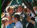 Volkstanzgruppen, die sich dem Schützenumzug anschlossen. An der Hauptschule wurde dann der