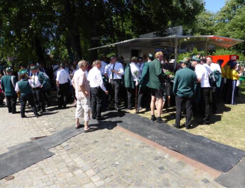 Bei strahlendem Sonnenschein traten die Schützen am Sonntag um 13.30 Uhr am Festplatz an.
