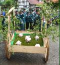 Begleitung eines Traditionswagens - marschiert, um Königin Anke und den Hofstaat auszuholen.
