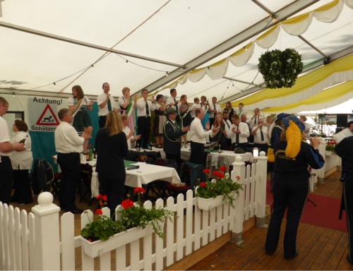 des Ensembles Kaffee der Musikschule Tecklenburger Land auf dem Festzelt statt. Die Schützen